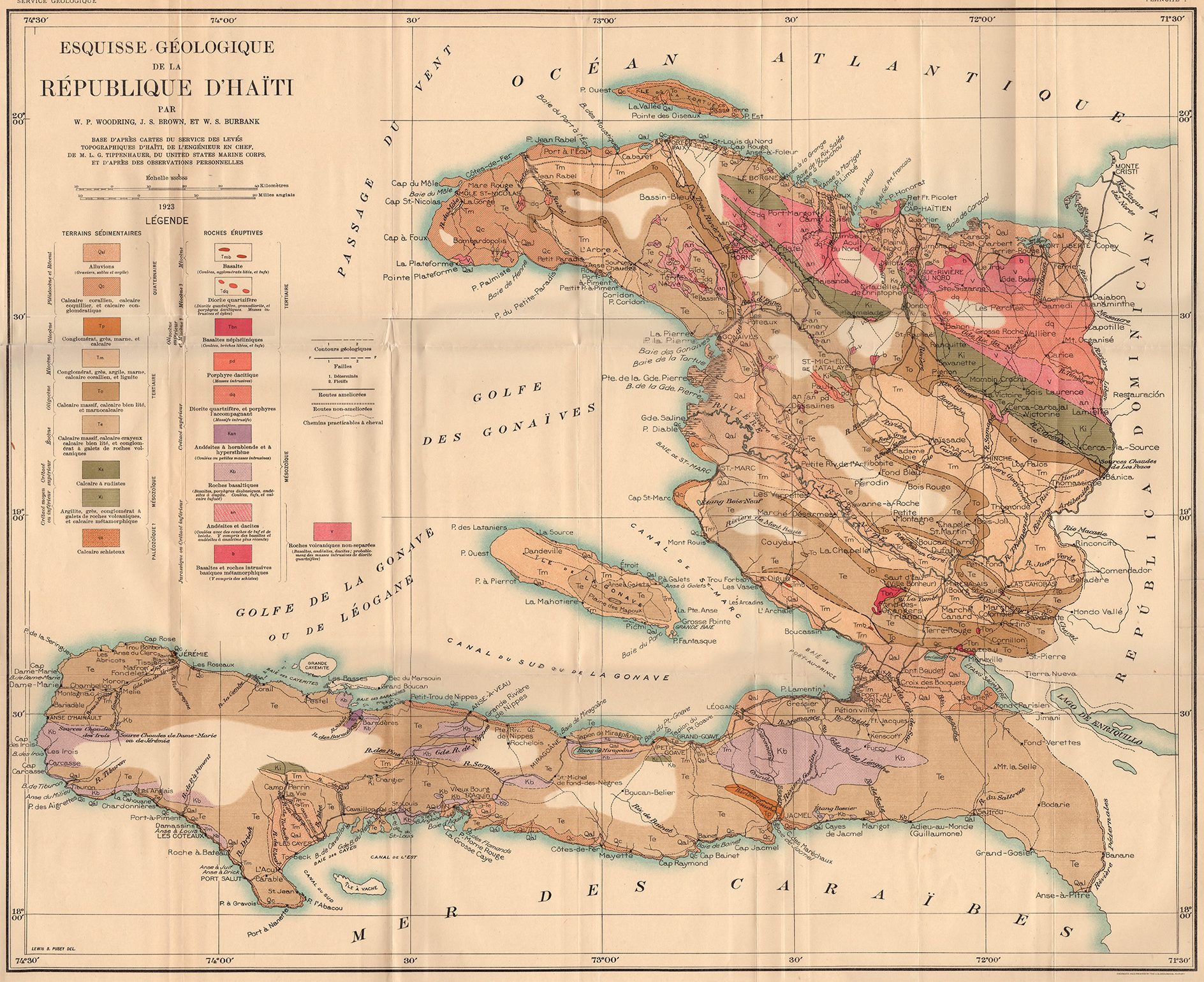 Image: Woodring, Brown and Burbank geological map, published in Geology of the Republic of Haiti (1924)